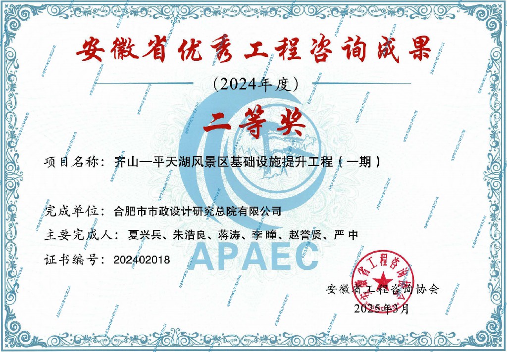 安徽省優(yōu)秀工程咨詢(xún)成果二等獎(jiǎng)
